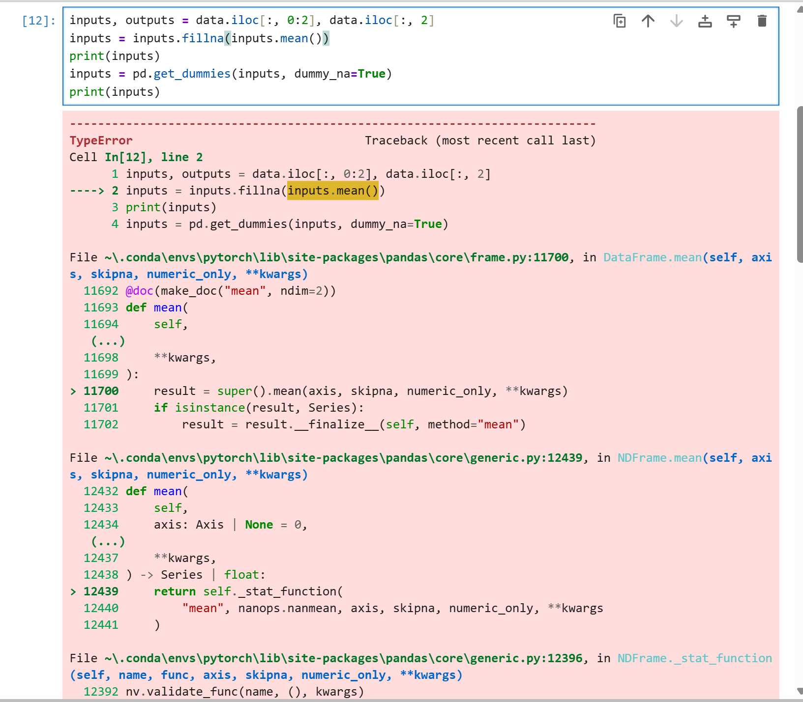 应该是pandas版本更新了,我看讨论说要加inputs.mean(numeric_only=True)才可以
