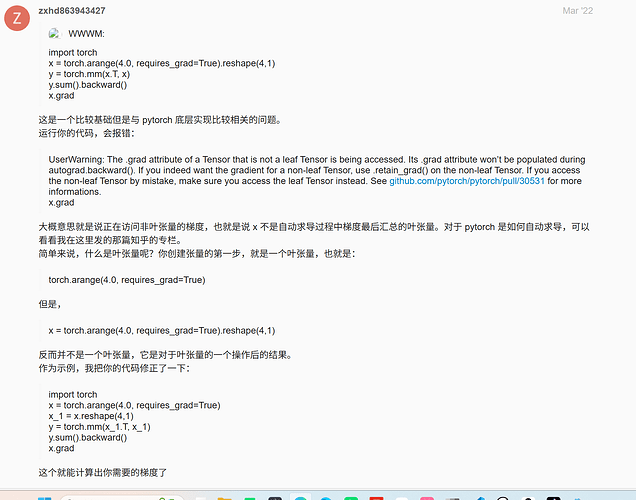 注意看下面的代码,我们在reshape操作之后再进行requires_grad属性的设置
